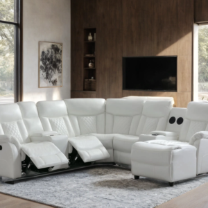 Color(s): White Material: Leather Gel Dimensions: 2 Recliners + Push Back Chaise. Bluetooth Speaker. Smart Phone Charging Pad. USB/USB-C Charging Ports. H.H.