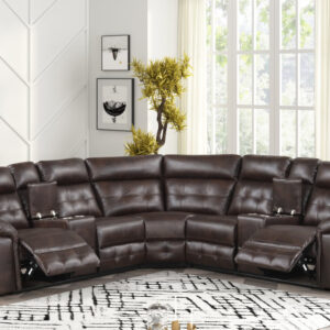 Power Sectional Brown Leather Gel Cup Holders Console with USB and AC outlet Material Faux Leather G.T.