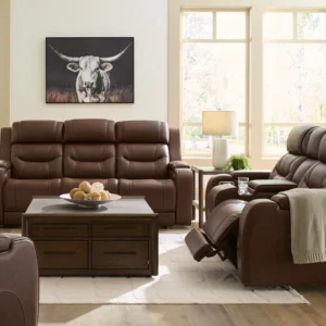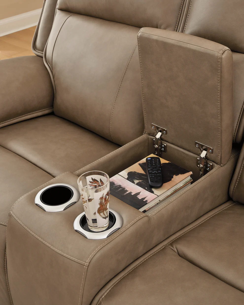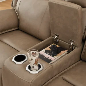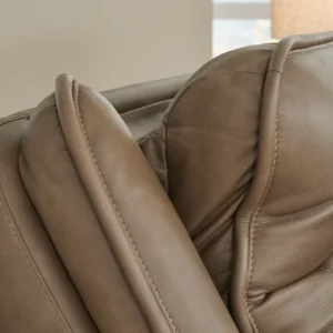Material: 100% top grain leather covers inside areas such as the back, seat and arm cushions; skillfully matched faux leather covers the remaining areas