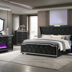 • Wingback bed features tufted headboard with LED crown accent and sculpted profile